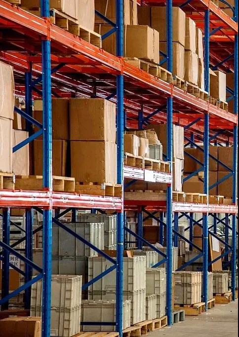 倉庫貨架立柱為藍色,主要起承重和固定作用,橫梁為橘黃色,主要起承載托盤的作用。藍色是非常沉穩的顏色,具有緩解焦躁的作用,有效降低作業人員在重復的操作中可能形成的疲勞感;而橘黃色是非常醒目且活躍的顏色,有著讓人積極快樂、增強活力的功能,且藍色與橘黃色是對比色,在叉車工作時能很好地辨識托盤位置,準確碼放貨品,保障貨品的存取安全。