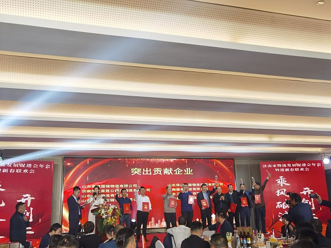 12月21日,農(nóng)歷冬至,濟(jì)南市物流發(fā)展促進(jìn)會年會暨迎新春聯(lián)歡會在鵲華國際酒店成功舉辦。濟(jì)南市口岸物流辦、市工信局、市工商聯(lián)、市商務(wù)局、市公安局物流寄遞保衛(wèi)支隊(duì)及各區(qū)縣工信局、發(fā)改局等分管領(lǐng)導(dǎo)共計(jì)50余人出席會議,物促會名譽(yù)會長馬純濟(jì)、王世敦,專家顧問團(tuán)卞允斗、孟慶春、李曉東,物促會領(lǐng)導(dǎo)班子以及近300家會員企業(yè)代表共聚一堂,歡度年會。