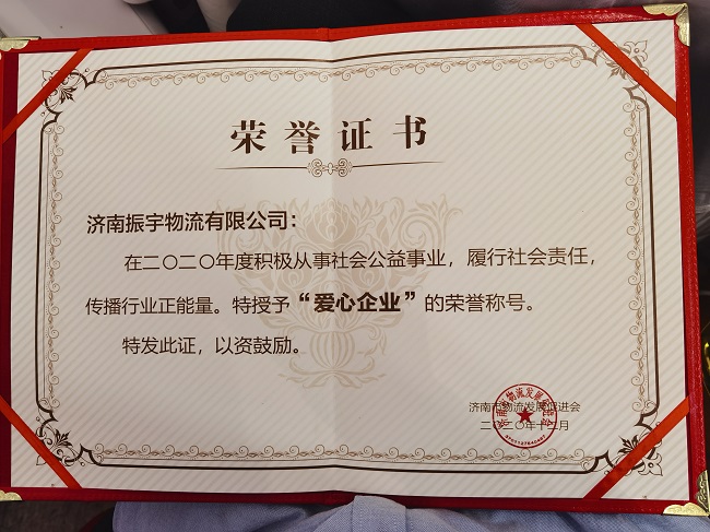 熱烈祝賀振宇物流榮獲“突出貢獻(xiàn)企業(yè)”“愛心企業(yè)”榮譽(yù)稱號!