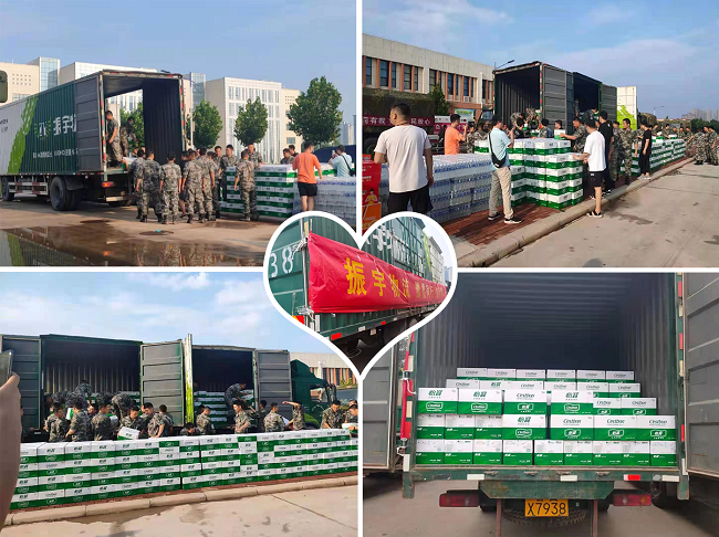 在洪災面前,在緊要關頭,為社會各界救援物資盡快運抵災區,振宇物流開通了綠色通道,免費承運發往河南的防汛救災捐贈物資,目前,已向河南運往礦泉水等緊缺物資。
