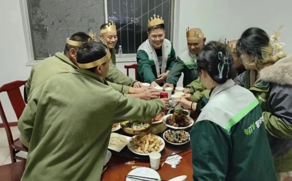 壽星們圍坐,燭光逐一亮起時,有人閉目凝神,有人望向身側的同事,輕聲許下心愿。從許愿時的真誠,到吹蠟燭時的歡呼,再到飯桌上的暢聊,這場生日會傳遞的不僅是溫暖,更是振宇物流“以人為本”的核心價值觀。它讓員工感受到企業不只是工作的平臺,更是并肩前行的“家人”,成長不只是個人的奮斗,更有團隊的托舉。
