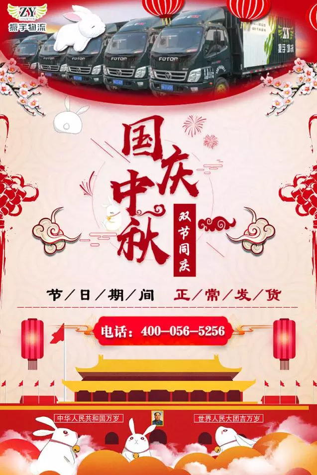 振宇物流各個網(wǎng)點(diǎn)正常營業(yè),雙節(jié)期間班車彈性發(fā)車,時效或順延一天,請您給下游客戶做好溝通解釋!