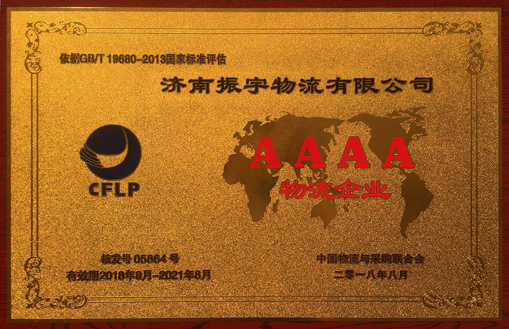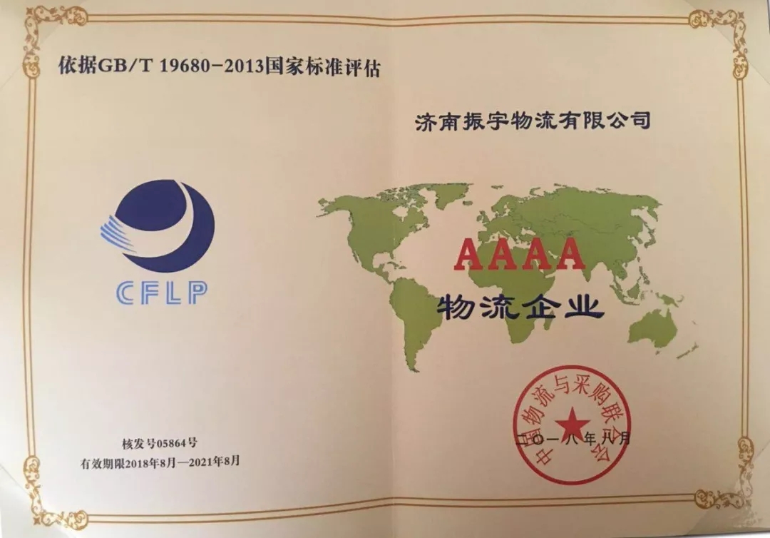 熱烈祝賀濟南振宇物流榮獲國家4A級物流企業